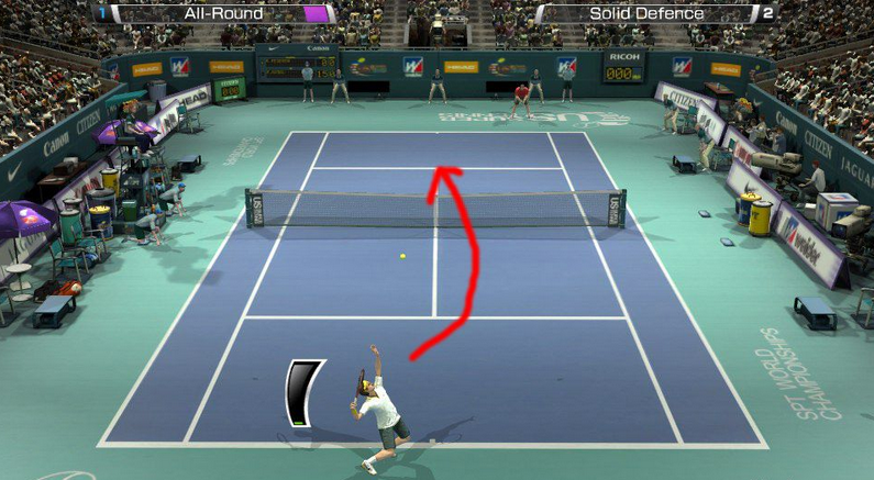 总结:结合以上,光从发球来看,对npc的胜率就可以说十拿九稳,因为外旋发球的优势,只要稳稳保住两个发球局就能拿下比赛。而在网战中,就不能用对npc的方法了,因为一般玩家从你的站位和击球力度就能判断你的发球类型,在这时候,我们就要跟对方玩心理,vr4的网战其实就是一场心理战。
