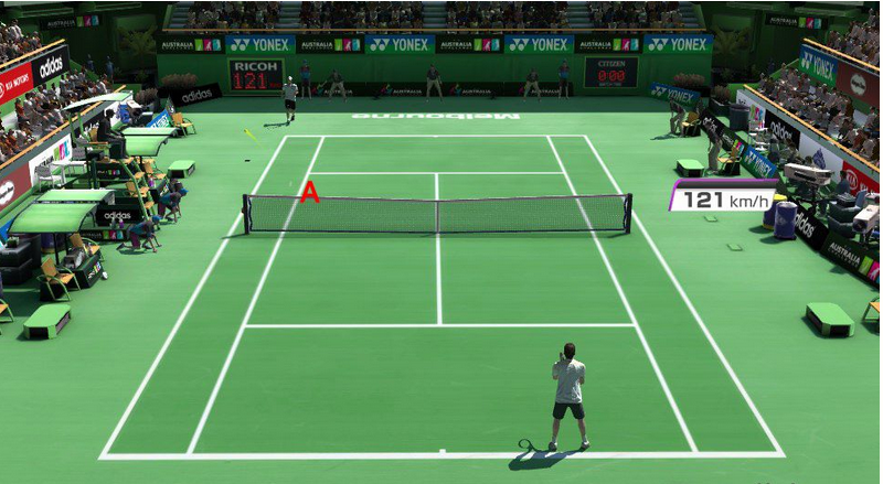 先跟大家谈谈基本操作,每个球员都有自己的接球范围,最理想的状态就是判断出对方的球落点,然后跑到落点后或者落点前(截击)把球打到对方接球范围外,然后得分。
