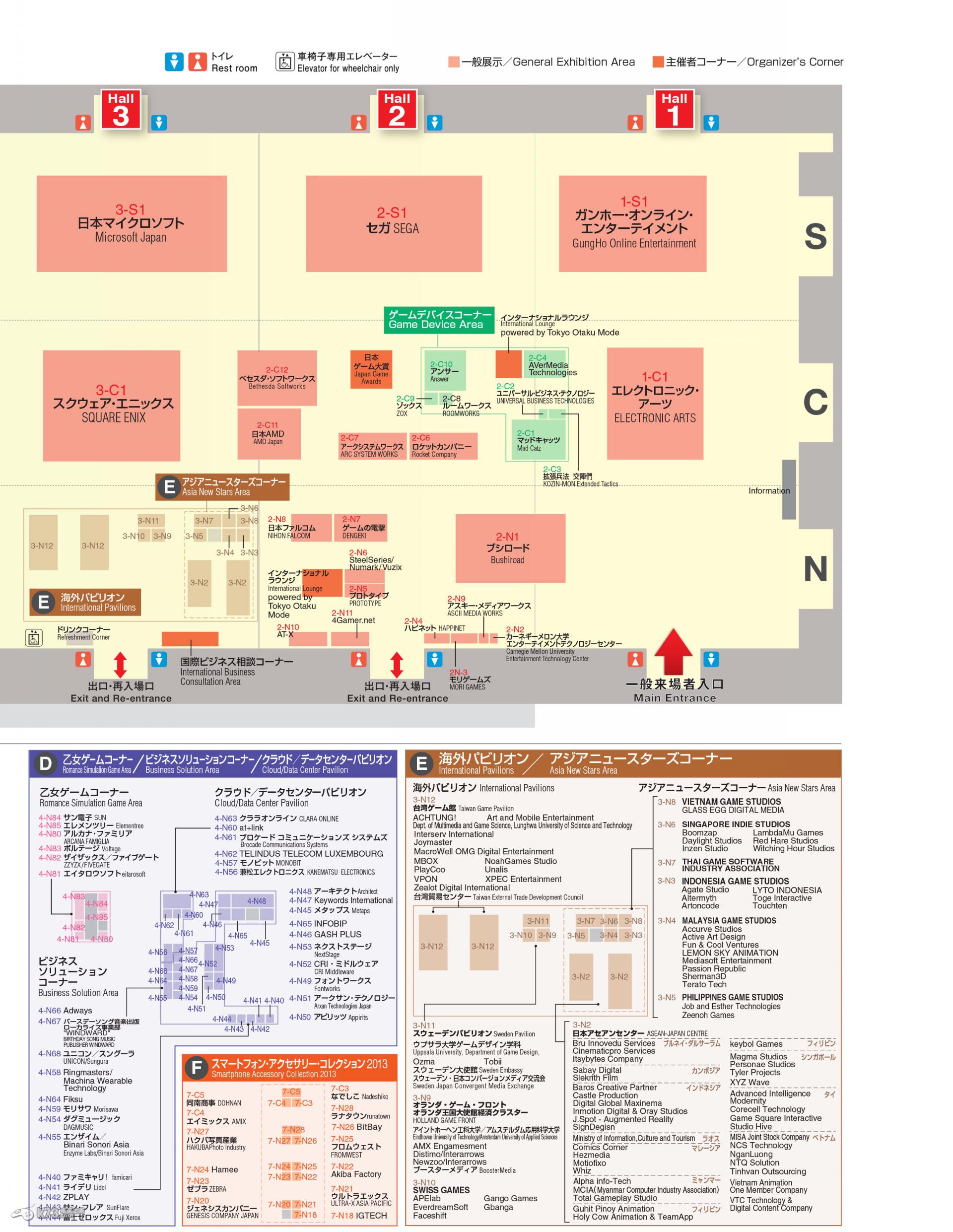 日前,本届东京电玩展TGS2013举办方CESA官方放出了将于下周开办的展会各厂商的展区平面布局图,各位玩家准备参加展会的玩家可以供着这图平面图很方便的找到自己喜欢厂商的所在地。