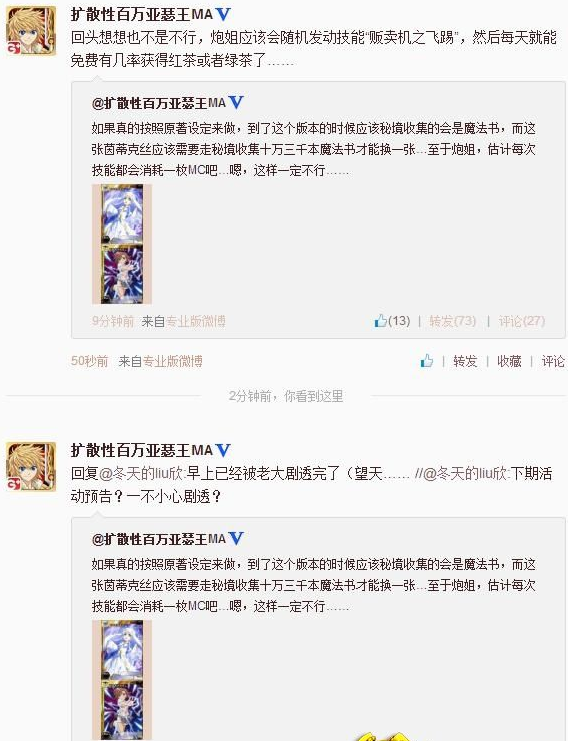 在今天的《扩散性百万亚瑟王》国服的官方微博十一点和下午一点半的时候分别更新了一些内容,从内容上我们看到了一些关于下期活动的内容猜测,不过也不确定是哪一些,九月十五这期或者再下一期?从以往的宣传方式来看,下次活动的内容应该是与《魔法禁书目录》有关,当然