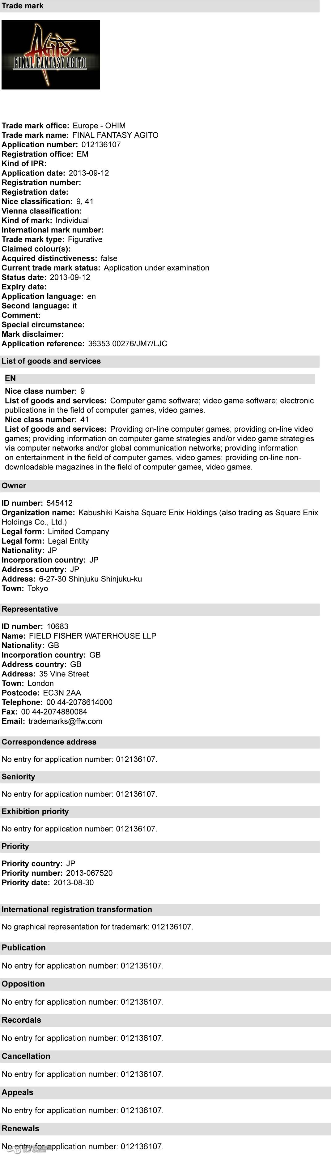 日前,SE欧洲官方注册了一个名为“最终幻想Agito / Final Fantasy Agito”的商标,这一商标让人联想到了当初的psp《最终幻想零式》的原版名称,难道是SE将会发行《最终幻想零式》的欧版?