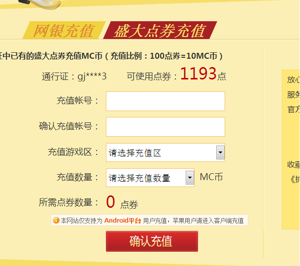 mc现在可以用盛大点券充值了,然后中国移动的m值积分兑换可以换点券。
