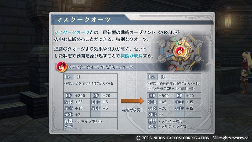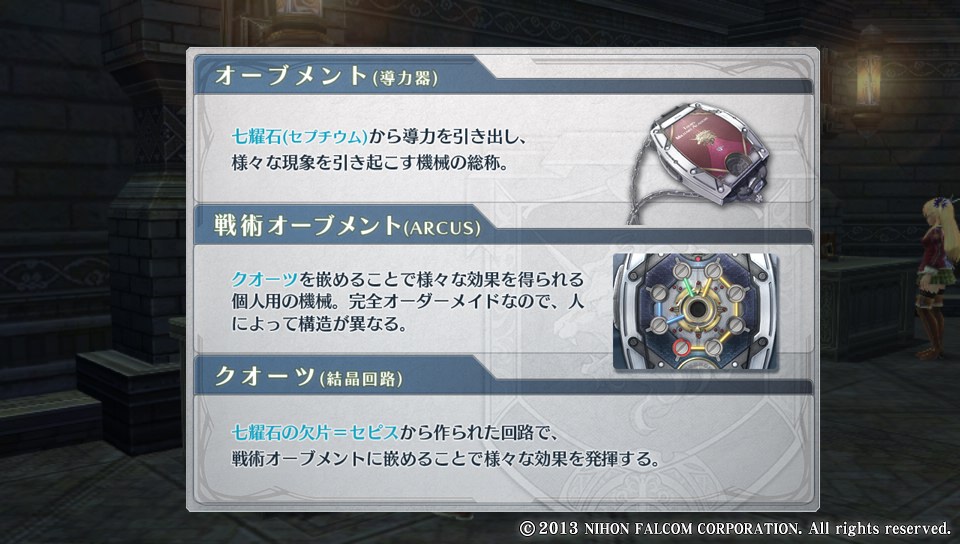 OREMENT 调整导力器 系列特色之一 ,对于没接触过系列的玩家, 简单一点来说就相当于是装备的宝石镶嵌 ,镶嵌的宝石有让角色使用魔法 ,增加自身属性等多种功能。