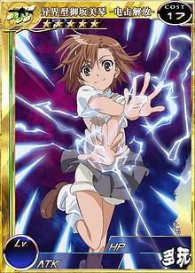 | 背景资料 | 御坂美琴有一般少女的兴趣,不过品味十分孩子气,特别喜欢名为「呱太」的青蛙卡通角色,对于它的吊饰以及其他周边非常执着。虽然很喜欢孩子气的东西,可是往往不会承认。 | |||