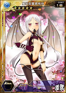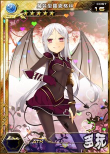 「魔装型罗恩格林」是魔幻万圣节改版新增的转蛋五星卡,cost16突满ATK16050、HP14500,技能为HP在50%以下时攻击力上升100%,虽然CP值不错不过用在一排牌组的话ATK太低会影响输出,建议二排以上再把魔装型罗恩格林加入牌组。