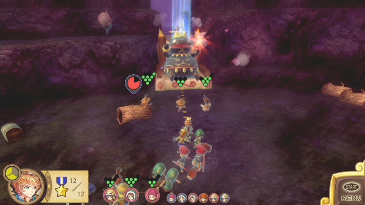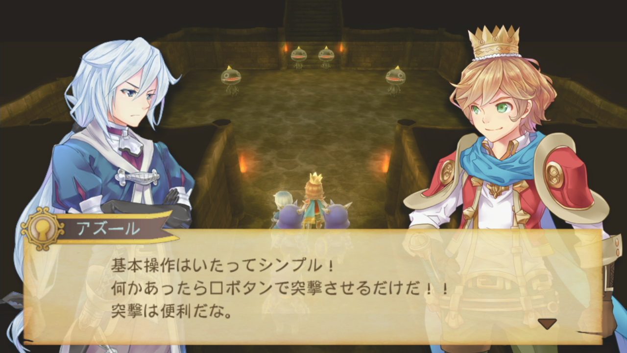 本作是一款玩家需要作为国王,将自己的小国家发展壮大的这种模拟的有趣感觉,动作部分的操作方法很简单,你只需要带领国民下达“突击”指令后,国民“突击”了状态下,就会根据自己的职业和情况来攻击敌人,发掘宝物,不用输入复杂的指令,就能享乐爽快的动作。