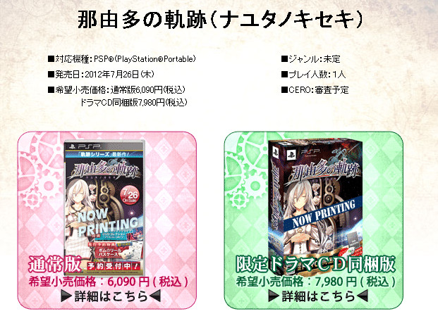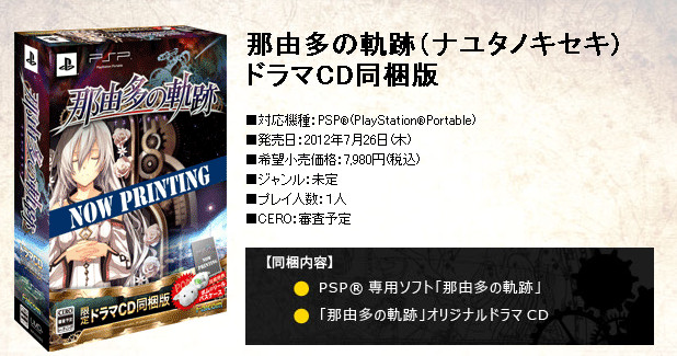将于今年7月26日发售的《那由多之轨迹》,此次将实行普通版与限定版同步发售的策略。限定版中将捆绑限定版的广播剧CD,价格为7980日元,而普通版的价格为6090日元。