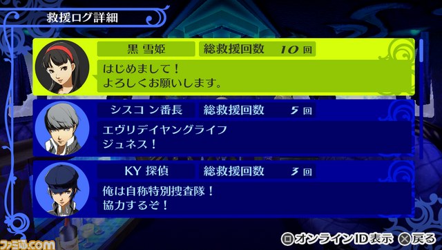 迷宫内陷入危机的时候,可以向其他玩家使用援助的“救援邀请”,支援发送出去后,玩家就可以得到“通讯卡”,获得的用户的信用卡ベルベットルーム进行确认。