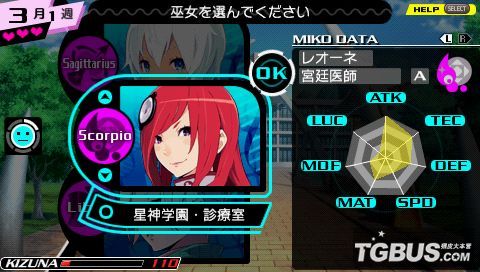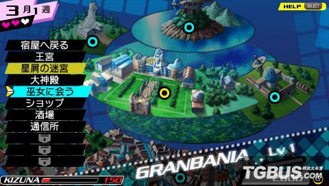 城镇的准备系统前面也带着说了不少,除了用来存档和进行队伍调整的宿屋,本作的 RPG部分的星屑的迷宫,用来生孩子的大神殿,第五项用来刷巫女好感度,第六项用来买东西的商店,以及用来接任务的酒场之外。联机通信的通信所,和能了解 到一些故事背景的王宫恐怕是平时并不常用的。