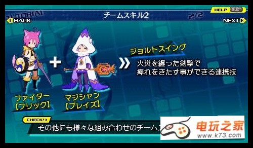 [职业和技能]类技能:战士技能[フリック]+魔法师技能[ブレイス]=ジョルトスイング[用缠绕着火焰的剑技攻击敌人,能够造成麻痹]