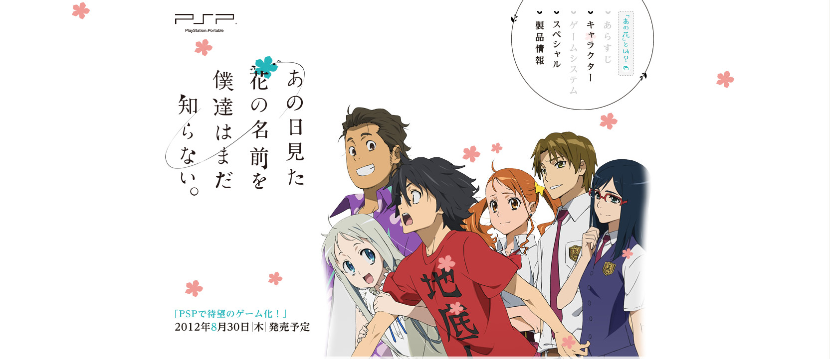 由人气催泪动漫改编的PSP游戏那朵花在继昨天公布游戏的人物介绍后日前终于公布了游戏的官方网站,感兴趣的玩家可以前去看看。