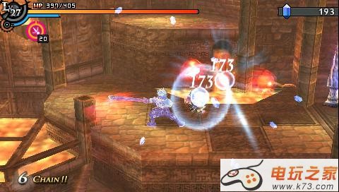 连续命中敌人后就会加算为连击,并用“CHAIN”表示,当这个数值到达一定程度后就能获得各种有利的效果,比如攻击力上升、金钱掉落率上升等等。