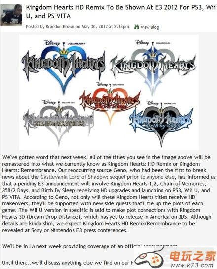 日前,一家网站网站爆料王国之心将会有五部作品HD化后登录PSV和PS3平台,不过这条传闻的真实性还有待考证,更多后续消息请留意本站的报道。