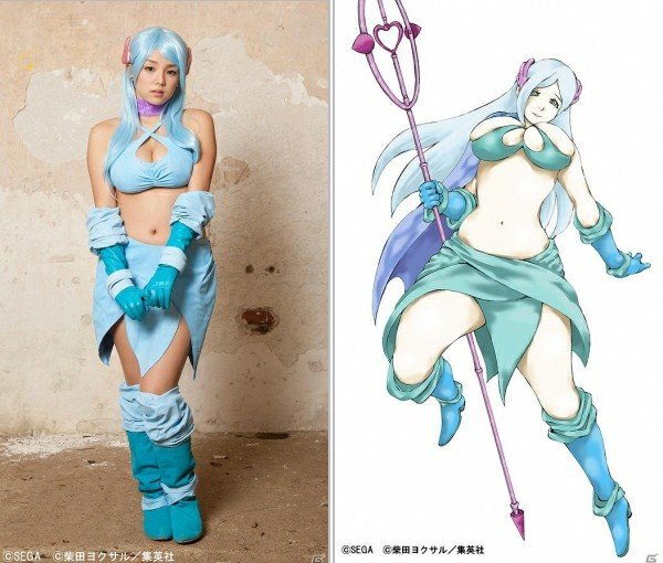 而不论身材和脸蛋都激似游戏中女法师的「篠崎爱」也受到製作人员的热烈邀请,在真人版宣传影片中穿上女法师的服装,并且还实际演唱了一段以《武士斗恶龙》世界观為印象的角色歌曲。