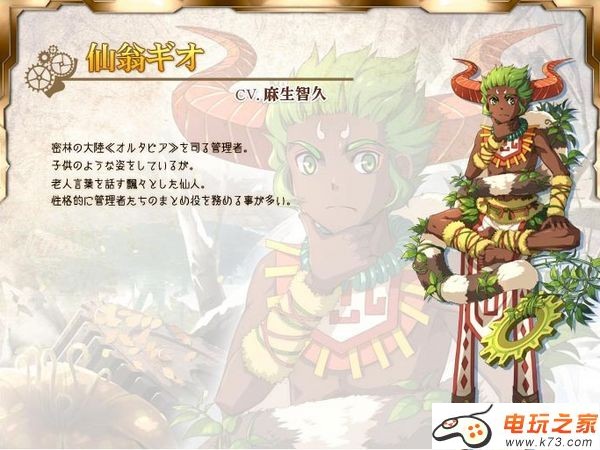 密林大陆“奥路塔比亚”的管理者。虽然是小孩的外貌,但说起话上来就知道他是仙风道骨的老人。