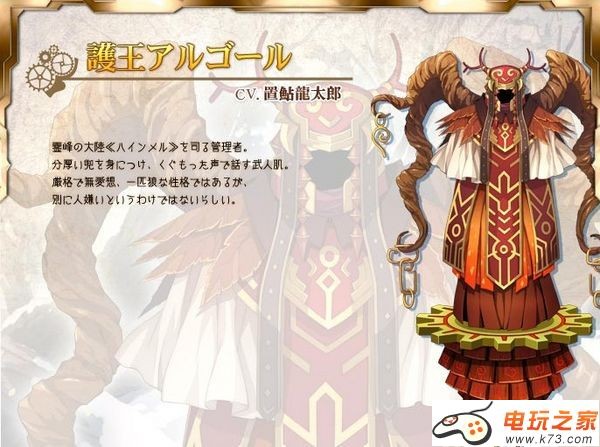灵峰大陆“海因梅洛”的管理者。身穿厚重盔甲的武人,严格而没感情,一匹狼的性格。