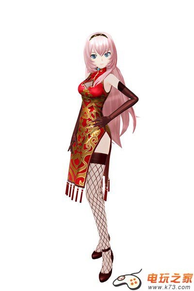 和“初音ミク 翠玉”成对的ルカ豪华中国旗袍是以红玉为形象。
