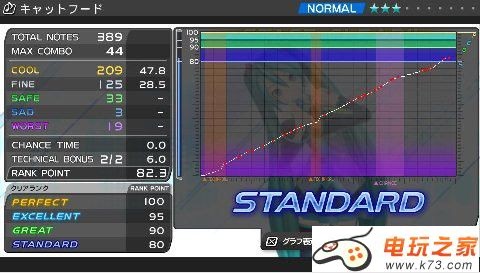音乐游戏结束后,游玩的过程会以图表显示,可以分析自己犯错的地方等。