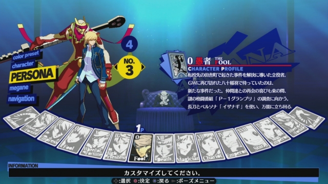初期阶段可以中8种中选择。还可以再追加8种顏色初期段阶。PERSONA也有装备专用顏色,可以与角色分开来设定。另外,眼镜也有準备16种顏色喔!