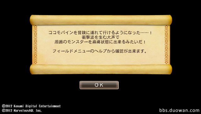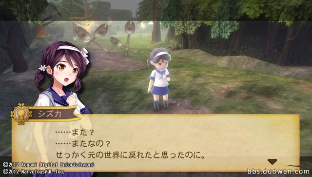 对话结束后自动进入下一天,双马尾可用,特技是狮子吼=.=,可以把周围的怪物都震晕。 |