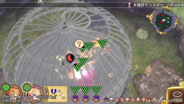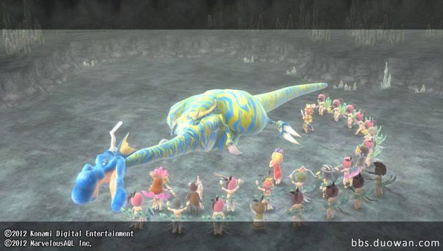 最后我们前往ソバマンジャロ,路上还是有大石头和大木桩,不过玩家现在的队伍里木匠和矿工应该已经常备了把。打碎岩石往前走可以看到一个大笼子,里面有化石龙。会麻痹属性和火属性的吐息,从外面走过的时候要小心。笼子右侧有门,打破后可以冲进去杀龙。注意这货需要杀死三次才会真正死透。 |