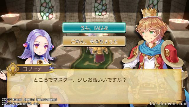 城堡门口的桥上歌星妹子在唱歌,选项同上。之后妹子会唱歌给国王听,再之后= =我不说了。 |