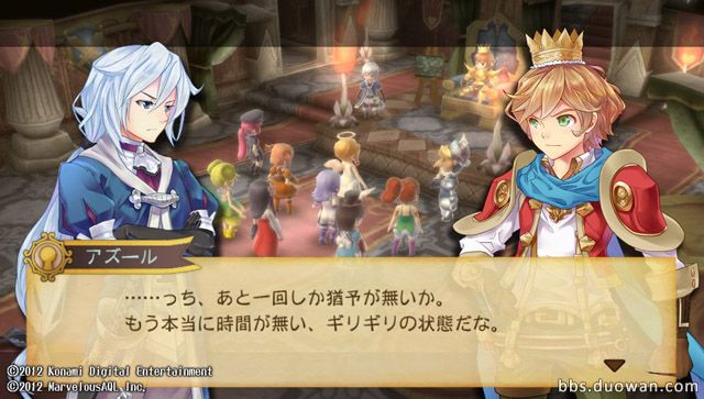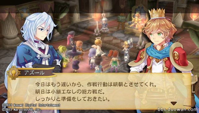 接下来是小两口温馨对谈时间=.=~基本是剧情回顾外加激励一下我们的额国王陛下。没想到激励完之后发生了校园纯爱剧必有一幕“啊,胸口好疼”…钉宫自然是蹭得累版死不承认。然后把国王赶到后宫去了。 |