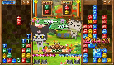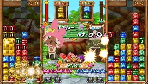 以人气狩猎动作游戏《魔物猎人》登场的猫型兽人艾路为题材的PSP方块益智游戏《艾路宝石方块》,将于7月19日发售当天推出三丽鸥人气角色美乐蒂与酷洛米的合作服装。