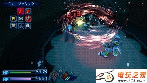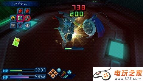 一开始,BOSS就将放必杀,几乎必死一次,之后BOSS会不断地放各系的大招,而且都是比较难防的,伤害则从1000到2000不等。如果没有什么出招时间的短的技能,基本上只能硬冲上去然后迅速转防御了。BOSS的必杀伤害将近7000,各位注意血量。将BOSS血扣到0之后,摁△键将ゴスベル構造体扔出去,接着进入第二战。