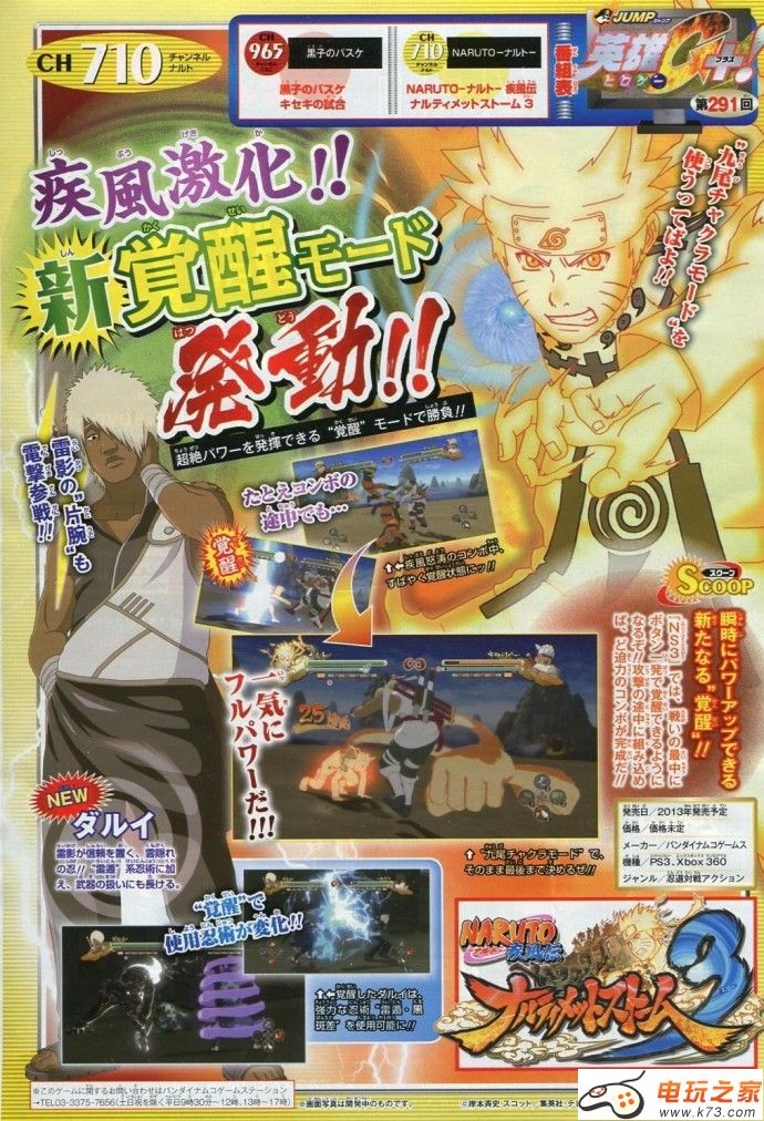 NBGI于近日的fami通杂志图上公开了其家用机火影忍者新作《火影忍者疾风传 究极忍者风暴3》的最新游戏情报,本次介绍了游戏的新模式【疾风激化】觉醒模式,感兴趣的玩家可以通过下面的杂志图一窥究竟。