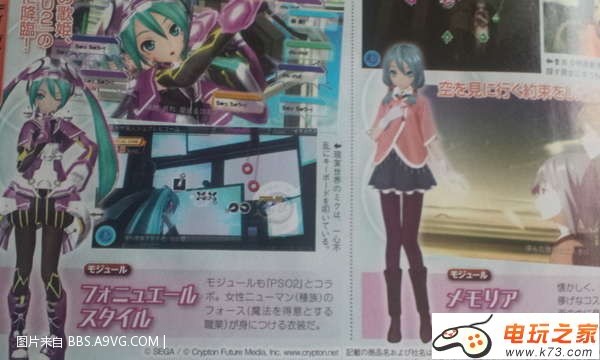 日本SEGA方面于本周的fami通杂志图上公开了部分PSV《初音未来歌姬计划f》的新消息,本作将会与同是发售于PSV平台的动作游戏《梦幻之星ol2》展开合作。另外,本作的几款新的角色歌曲服装和ar live模式也得到了判明。