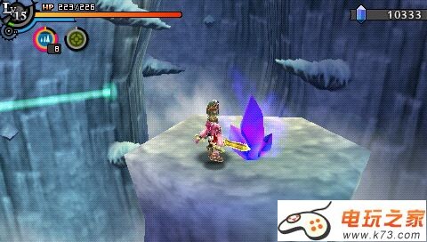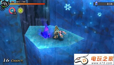 巨竜の墓地·冬 本迷宫的任务为使用剑消灭50个敌人,因为敌人数量众多,完成任务绰绰有余。本迷宫出现雪地形,与沼泽地形同理,削弱行动力的地形。本迷宫的一个大水晶需要比较熟练的使用齿轮连接能力,才能获得,进行连续弹射最后砍到水晶,貌似在最后一个齿轮处不能停,只要一停不管怎么跳都都够不到(未验证,我是砍这个水晶砍了起码有五分钟)。
