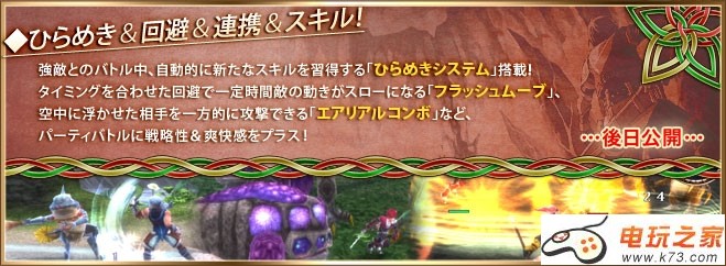 强敌的战斗中,搭载自动习得新技能的「闪动系统」!配合时机回避,在一定时间内使敌人的动作变慢的「Flash Move」、能给与漂浮在空中的敌人单方面攻击的「空中连击」等,队伍战斗的战略性及爽快感加分!
