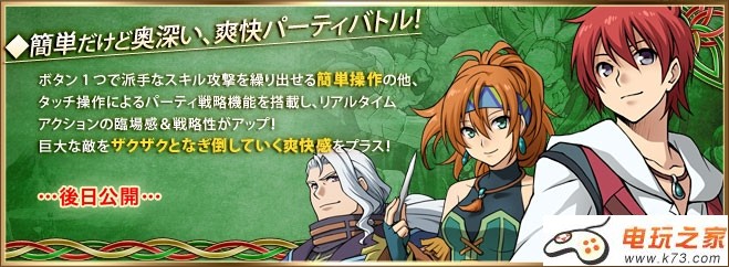 以1个按键就能陆续施展华丽的技能的简单操作,其他还有搭载随着触碰操作的队伍战略机能,即时行动的临场感&战略性大增!打倒巨大的敌人的爽快感加分!