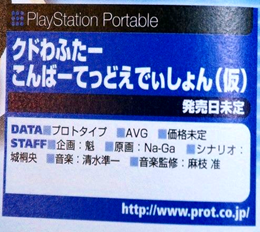 同时原本在2010年6月25 日,于PC 平台上发售的「クドわふたー」(Kud Wafter)也决定要移植到PSP平台上!