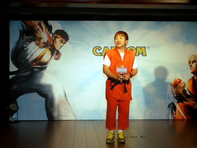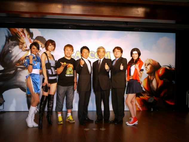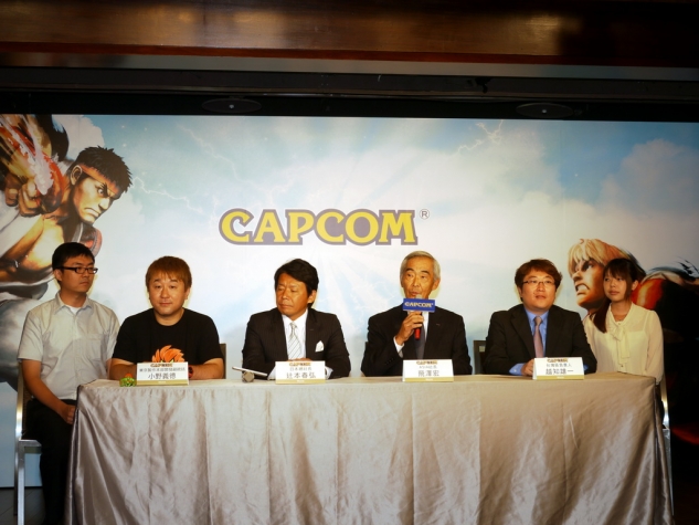 CAPCOM社长辻本春弘、亚洲区董事飞泽宏、《街头霸王》系列制作人小野义德以及台湾地区负责人越知雄一
