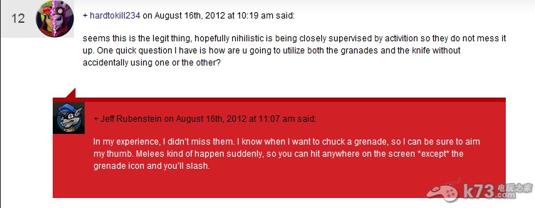 问:看起来这个游戏挺对胃口的, 幸亏nihilistic正在和动视积极的合作,这样他们就不会搞糟这个游戏。我有一个问题是我如何能准确使用手雷和小刀而不是误操作这两个物件。