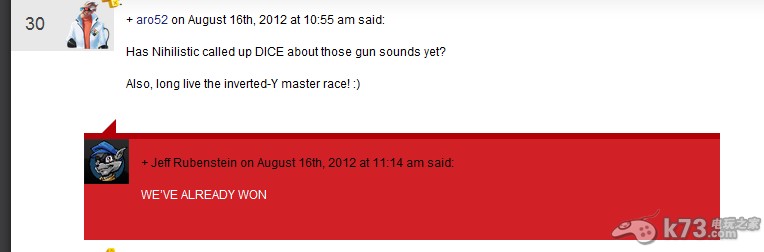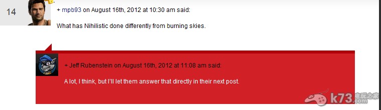 问: Nihilistic 有没有让DICE来教教他们做射击的音效?祝你们在漫长的道路中能一直奋斗下去。