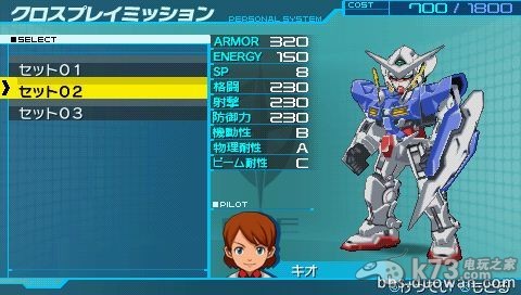 ソレスタルビーイング | ★7 | 机动性绝对是提早game over的 而且性能三围好不去哪里 攻击很慢,不过主炮攻击很高 ★★★☆ |