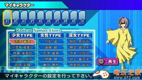 比前作还要自由的角色作成要素!在前作受到好评的玩家角色作成机能更加提升了!可以选择的服装男女各 11 种,合计 22 种,而声音也是有男女各 15 名可以选,合计 30 种声音!而且担任这些声音的声优们都是在各个领域中活跃的有名声优,可以让玩家作成更有爱着度的角色喔!