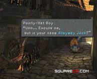 “嗨,你,过来!你就是那个拿假票的小子,是吧?”一个鼠裔族的小子突然跑进巷子里来,他看起来似乎有什么图谋,“我看见那买票的亲口对你这么说的!” 有三个选项,无论承认还是摇头都无所谓,他都会继续问:”“我还是可以让你看到戏的,不过你就要做我的奴隶了!怎么样,你说?”选第一项“好吧”。“那就最好啦!现在开始第一个任务!你站在那边,看有没有人过来!”鼠裔族跑到巷子的这头,而黑魔道士则跑到那头。“行了没有?”选第一项“是,行了”。“那就对了!下面就按计划行事!”鼠裔族跑过来扛走梯子。 先不要跟上去。待一会儿巷子那头会走进一个人来,迎上去和他对话,注意要快!否则就会被偷走39Gil。“呃...请问您的名字是叫做Alleyway Jack吗?” “呃?你怎么知道我的名字的?”Alleyway Jack奇怪地说,“如果你真的知道的话,那你可能就是想我挑战玩卡片的水平了,是吗?什么,还不知道怎么玩?要我教你?” 接下来他会教你如何玩卡片,关于卡片这里就不多说了,具体的请参看专题部分的《卡片游戏》。 |