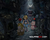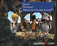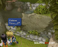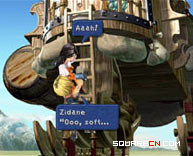 | ATE:森林里的管弦乐队 在剧场艇上,那几个乐队人员正在演奏一首曲子,对FINAL FANTASY VII熟悉的人一定不会陌生。那就是,神罗总裁的欢迎典礼:Rufus' Welcoming Ceremony。 (可以说,FF IX里面的某些BGM几乎和前面8作中的一首或几首BGM相同或者部分相同或者相似,以后的剧情中你就能听见另外的几曲,从而一饱耳福了。) |