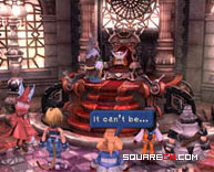 与此同时,Alexandria(アレケサドリア)的城上。 “Garnet(ガーネット)……”Brahne(ブラネ)女王气狠狠地说,“我从没想到你会干出这种事来。也许你已不是过去那个无助的小女孩了……Zorn(ゾーン)!Thorn(ソーン)!” 两个小丑分别出现在王座的左右。 “我们的小实验成功了没有?”Brahne问。 “是的,女王陛下,已经做好战斗准备了。”Zorn回答。 “它能够轻易地结束Garnet公主的性命,女王陛下。”Thorn又补上一句。 “我不要死的,我要活的!”Brahne暴躁地转过身向两人叫道,“立刻把她给我带回来!” |