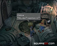 看完ATE直接从楼上下来进入右边的房子探望Vivi。 看着躺在床上还处在深深自责中的Vivi,Zidane上前安慰了他几句后欲转身离开。临走时Vivi说了声:“谢谢你,Zidane先生。” “第一次听见有人叫我‘先生’,叫我Zidane就好。” “OK……Zidane。”Vivi微笑着说。 说完话别急着离开,房间的左上角可以找到物品Ether(エーテル),从右边的梯子爬上床还能拿到116 Gil。 “噫,他一定很沮丧……”走出门后的Zidane回想着刚才安慰Vivi时对他的承诺,“也许我不该做那个保证,连我自己都不知道是否能够找到她。” 画面回到Zidane第一次见到Garnet(ガーネット)的时候,Zidane的脑海中正浮动着那些模糊而又清晰的景象,他与她谈话时的一颦一笑一喜一怒。 |