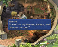 | ATE:Vivi的购物。 “哇,这个果仁闻起来真不错。我想该买一个……这里有许多不寻常的东西。这个是吃的吗?看起来不错,看起来像爷爷给我做的芝麻面包。”Vivi一边滔滔不绝地说着,一边看着商店里出售的物品。它们让他眼花缭乱。 在门牌上看到标语“狩猎祭特卖今日结束”后,店里的老板会送给我们一个Kupo Nut(クポの実),莫古的最爱。 |