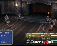 | 提示: Steiner的Swd Mag技能只有当战斗中Vivi同时在场的时候才能用,他会借用Vivi的黑魔法的力量附加到剑上攻击,但消耗的还是自己的MP。这有点像FF的传统职业魔剑士。 |