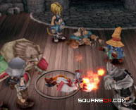 “好黑啊……”那个少年自言自语地说道,“看起来这儿还没什么人。” 他点亮一根火柴,从而能勉强看见自己身边的一些地方。 现在玩家开始控制他。在房间右上方头顶会出现!号,表明发现物品,那是个Potion(ポーション);左上方能找到一些钱47Gil。 来到屋子中间的桌子前,那儿有一根蜡烛。当走到有事件会发生的地方时,头顶会出现?号,这时只要按确定键进行相关的选择便可以了。 这里选择第一项“点亮蜡烛”,屋子立刻亮了起来。 “谁在屋里?”门外一个声音问道。 |