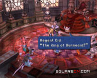 “在那儿吵闹什么?滚出去,寄生虫们!”Leo国王大发雷霆,“你们竟敢在国王面前露出锋芒!?挡我者死!” 和Leo以及两名随从战斗,注意这场战斗是必须胜利的,否则就会GAME OVER。 战斗中我方三人都会多处一条无杀伤性的指令,没有实际意义,先将Leo身旁两名随从解决掉再对他进行一定的伤害就能结束战斗。 “啊...呃...”Leo国王带着伤逃走了,“你还没有见到我的真功夫,Marcus!” “别想逃!”Zidane从后面追上去,却被Blank挡住去路。 “仔细想想,Zidane!要是Schneider(シュナイダー)王子要迎娶Cornelia公主的话,那样和平就能够降临在王国的上空!” |