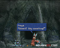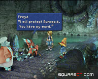 | 剧情提示: 此时Freya回忆起了她的离散男友Sir Fratley(フラットレイ)。 “Beatrix?”Freya发问道,从情形上看他们正在谈论着什么事。 “Freya,你会过得很好的。相信你的力量,信赖你的命运。”Sir Fratley对她说,“当我完成周游世界的旅行时,我就会回到Burmecia。” “再向我保证一次,你会回来的。” “我保证。”Sir Fratley坚定地说。他走出屏幕,只留下Freya一人伤心地单膝跪在地上。 屏幕转黑。 “Fratley……你从未回来过……”Freya心里想着,“除了你死去的传闻,你什么也没给我留下。我不能相信!除非我亲眼见到你死去了。如果必须的话,我将会周游世界……” |