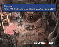 打完之后也就算脱离组织了,去叫Steiner和Vivi他们一起救公主吧。在找Steiner时当然免不了又来一场口舌之战,最后当然又是以Steiner的委曲求全而告终。 当提及Vivi时,Steiner居然一本正经地称呼他为“Vivi大师”,真让人哭笑不得。离开房间前Steiner会和Vivi悄悄提及“Swd Mag(魔法剣)”的事。 在Steiner的房间里可以找到Ether。 |